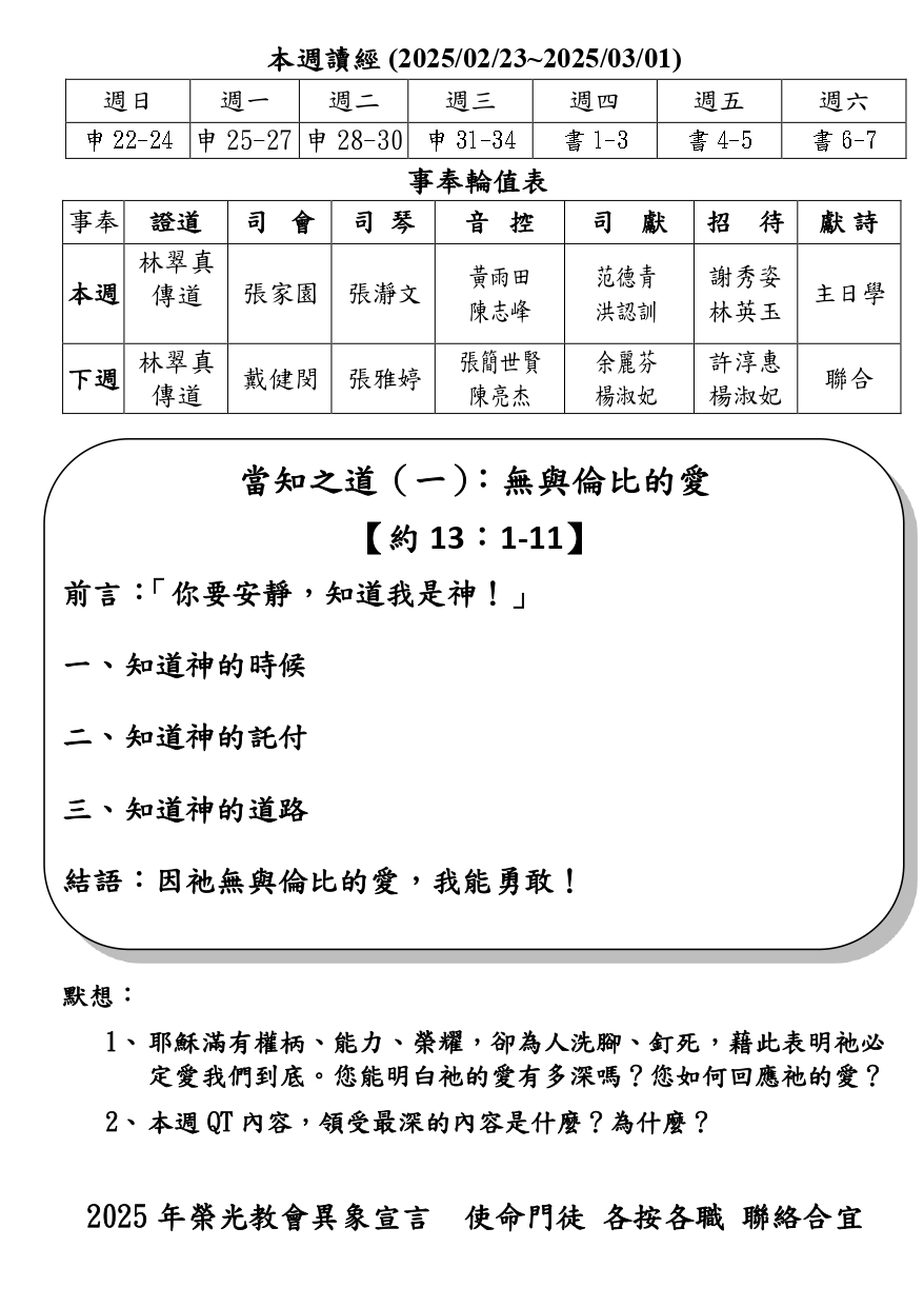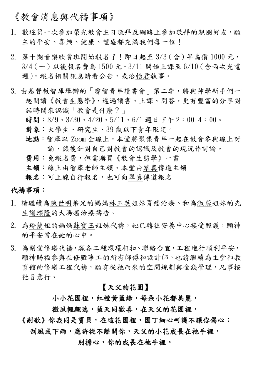 教會活動及代禱事項_2025/2/23週報2541