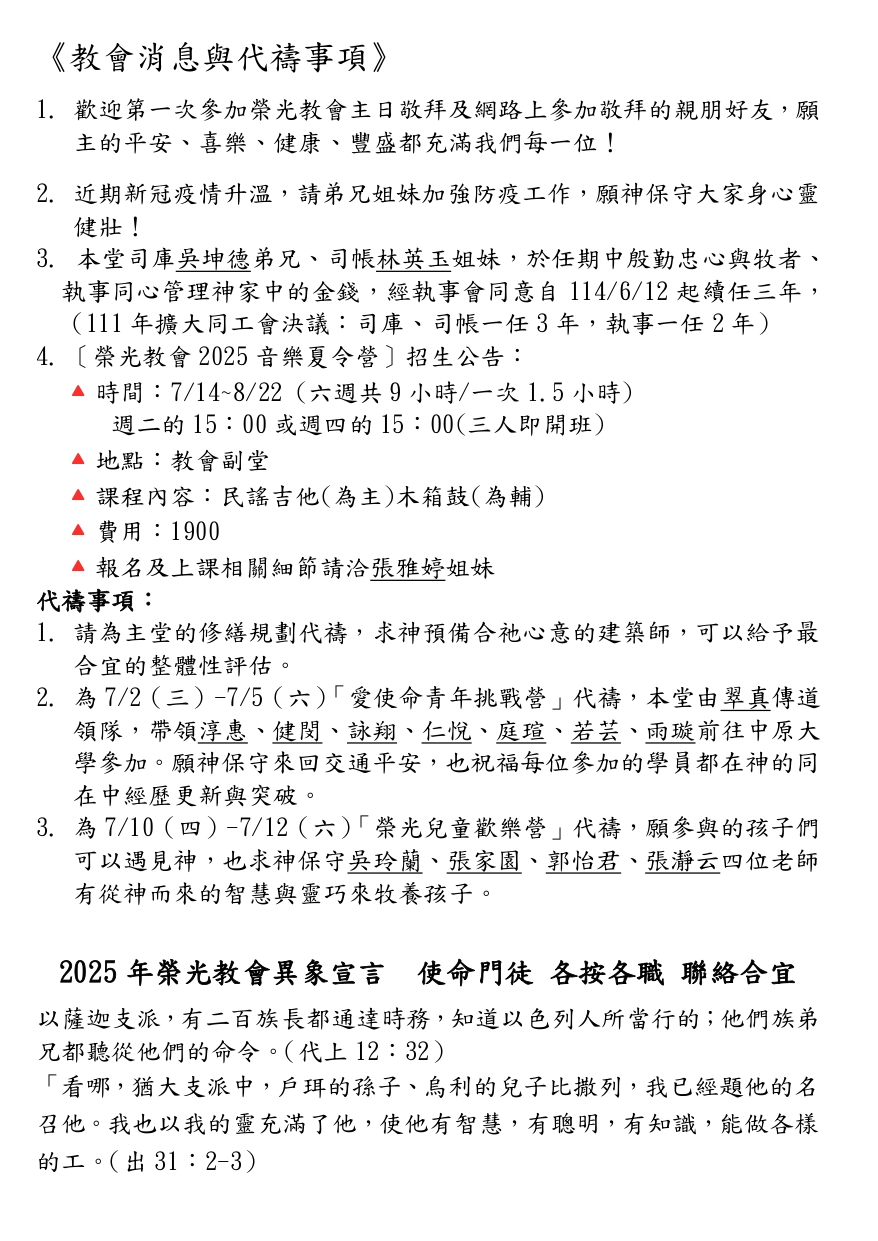 教會活動及代禱事項_2025/6/29週報2559