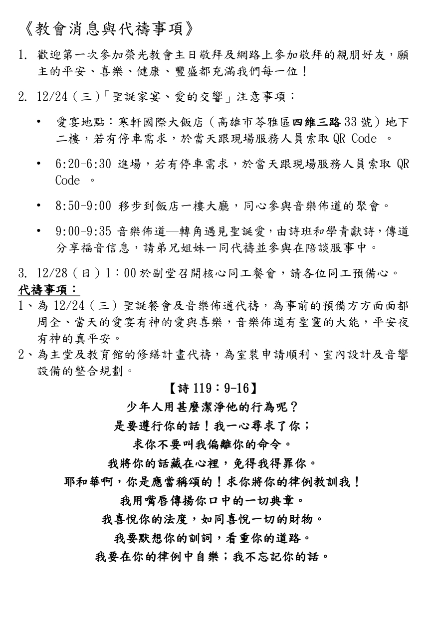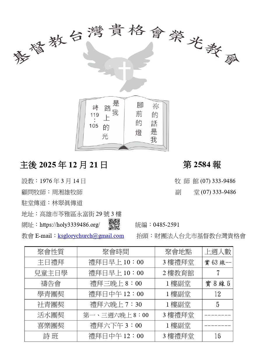 2025.12.14高雄貴格會榮光教會主日崇拜尹麗玲傳道講道「讀經的益處」【提後3:16-17】