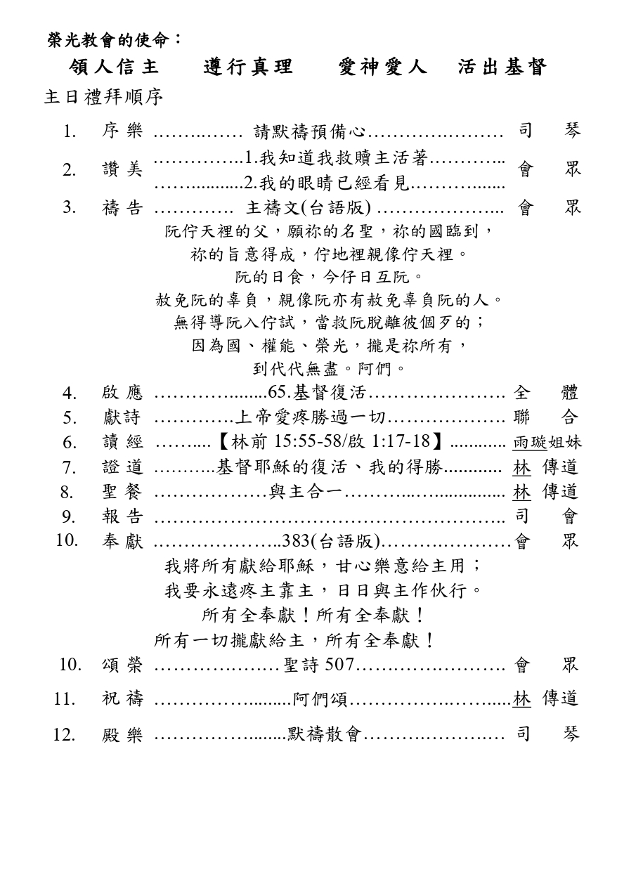 主日信息逐字稿