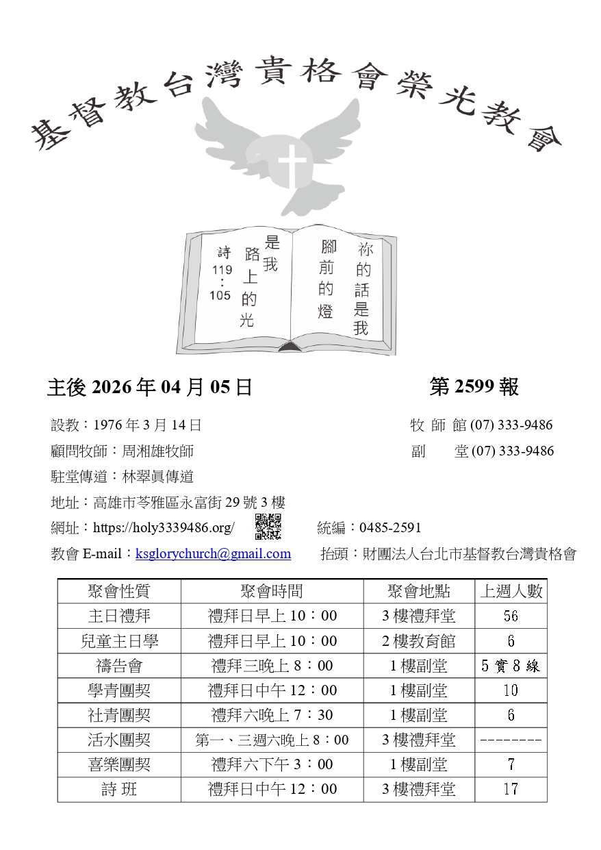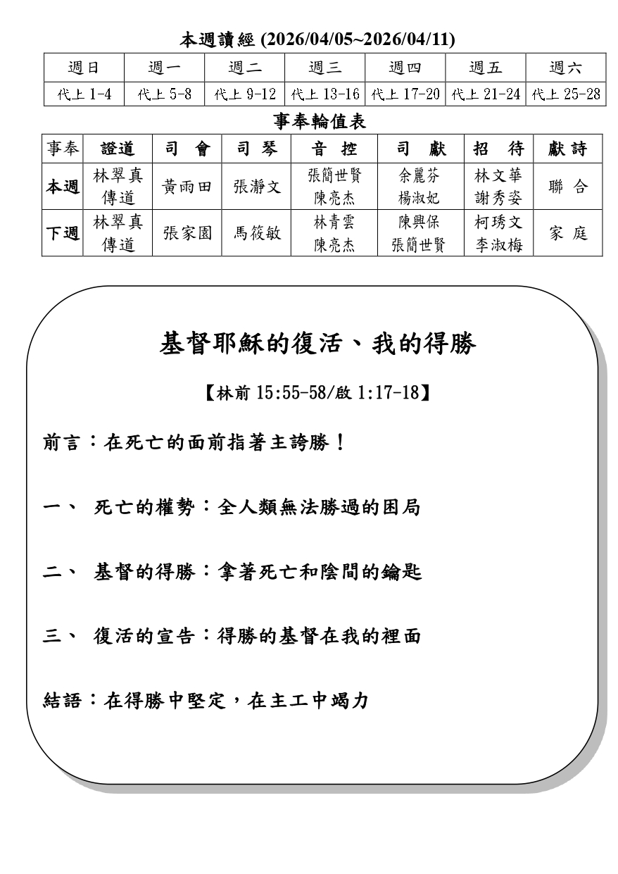 教會活動及代禱事項_2026/4/5週報2599