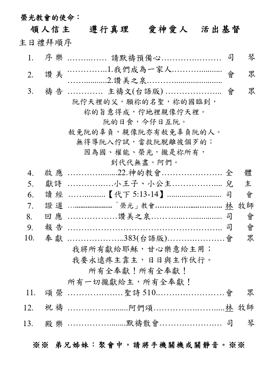 2026.03.15高雄貴格會榮光教會50週年紀念主日崇拜林翠真傳道講道「恩約永續——至於我和我家」【書24:14-15】