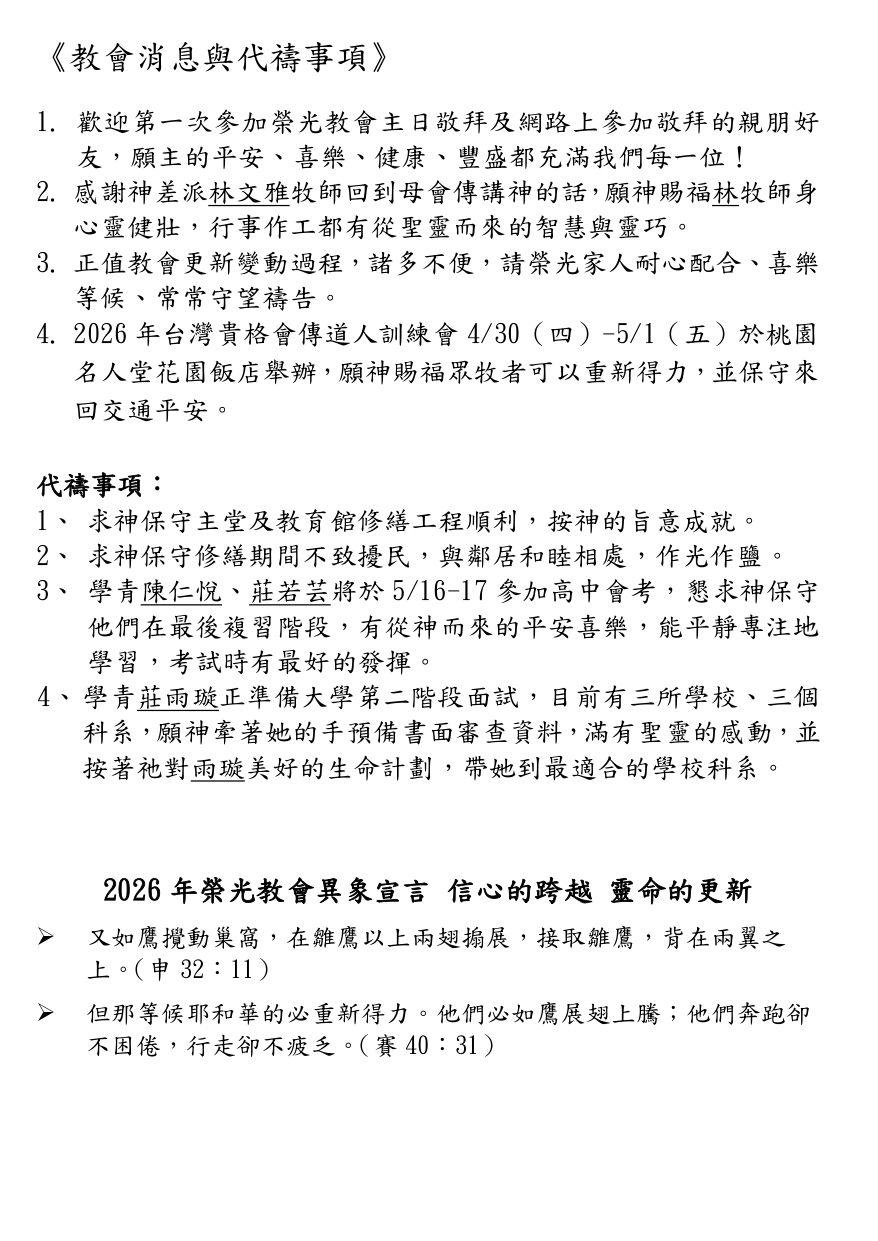 教會活動及代禱事項_2025/6/26週報2602
