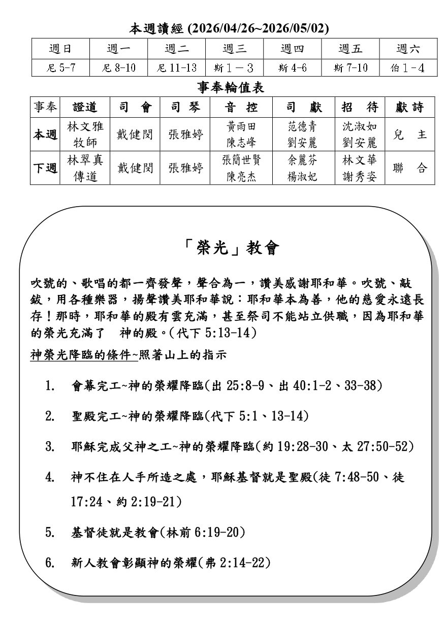榮光教會FB粉絲專頁